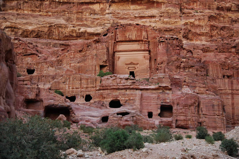 Петра - одна из самых популярных достопримечательностей в Иордании. Это столица древнего арабского государства - набатейского царства, которая была построена в 6-5 веках до н.э. Петра расположена в глубоком каньоне, шириной от 5 до 250 метров и пройти туда можно только через узкую расщелину в скале. Все здания в Петре высечены из скал. Самое впечатляющее из них - Аль-Хазна (Казна). Когда-то здесь находилась королевская усыпальница, а своё название она получила из-за легенды, что пираты прятали здесь свои сокровища. Интересен Амфитеатр, способный вместить 8 тысяч зрителей. После Амфитеатра начинается основная часть города, которая занимает площадь около 3 кв. км. Здесь можно увидеть королевские гробницы, длинную улицу, окружённую колоннами, триумфальную арку, Храм окрылённых львов, византийскую церковь, которая полна мозаик, в общей сложности покрывающих 70 кв. м. Некоторые достопримечательности Петры находятся на больших высотах, куда сложно добраться. Среди них - Монастырь и место для жертвоприношений с алтарями. В Петре работают два археологических музея, где собраны коллекции предметов, которые отождествляют с библейскими хрониками.